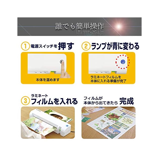 【機能】:簡単操作 【ローラー本数】:2本 【加工時間(A4/1秒)】:71秒(50Hz)・59秒(60Hz)