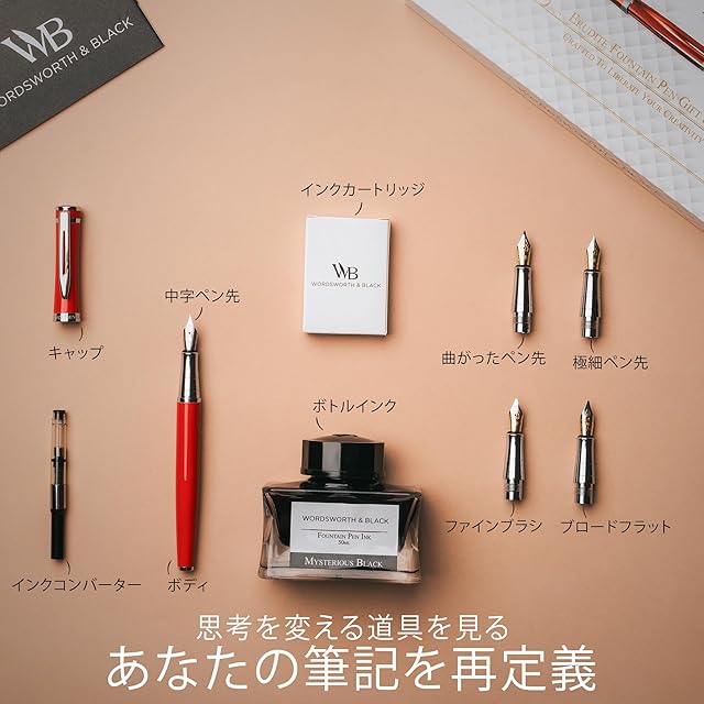Wordsworth & Black 万年筆ギフトセット、インクボトル、6つのインクカートリッジ、インクリフィルコンバーター、4つの交換用ペン先、プレミアムパッケージ、ジャーナリング、カリグラフィー、スムーズな書き心地のペン [レッドクローム]