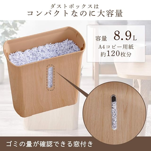 アイリスオーヤマ 細密シュレッダー 家庭用 マイクロクロスカット 細断枚数3枚 ホチキス対応 連続使用3分 ダストボックス8.9L A4/120枚収容 P3GMD-T ブラウン