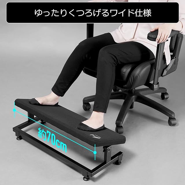 【ワイド設計×チルト機能】お好みの角度に調節できる横幅70cmのワイドな足置きです。