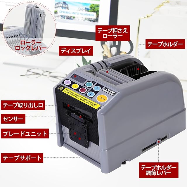 【自動/手動モード】この自動テープディスペンサーはセンサー付きので自動送り・自動カットできます。自動モードでは、表示する長さが設定すれば、使用中で必要なテープの長さが設定すると、自動的テープをカッターして送り続けます。手動モードでは、カットボタンを押すと、テープをカットします。