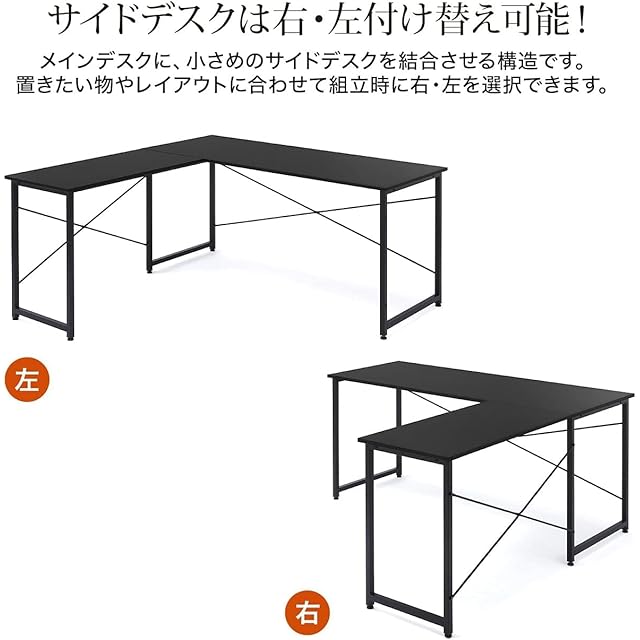 幅150×奥行60cmのメインデスクに幅90×奥行45cmのサイドデスクを結合させる構造です。置きたい物やレイアウトに合わせてサイドデスクを 左右入れ替え ることも可能です。
