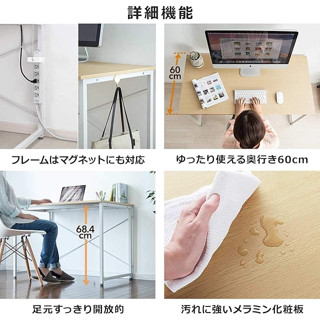 【製品サイズ】約W800×D600×H700mm・約11.1kg【耐荷重】50kg【梱包サイズ】約W890×D660×H101mm・12.4kg【出荷形態】ノックダウン組み立て式(お客様組立)【材質】天板/木製(メラミン化粧板)、フレーム/スチール(エポキシ粉体塗装)【生産地】中国【取扱説明書】あり【期間】初期不良のみ