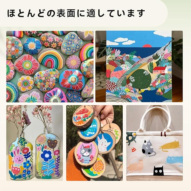 さまざまな表面にうまく機能 - Arrtx アクリル マーカー セットは、水性の滑らかなインクとさまざまな表面に優れたカバー力を提供し、紙、厚紙、金属、岩絵、木材、プラスチック、キャンバス、布地、石、イースターエッグ、イースターに使用できます。 装飾、金属、クリスマスオーナメント、ハロウィーンのカボチャの絵、書道、スクラップブック、筆文字、クリスマスカード、誕生日プレゼント、グリーティングカード、DIY工芸プロジェクトなどに最適です。