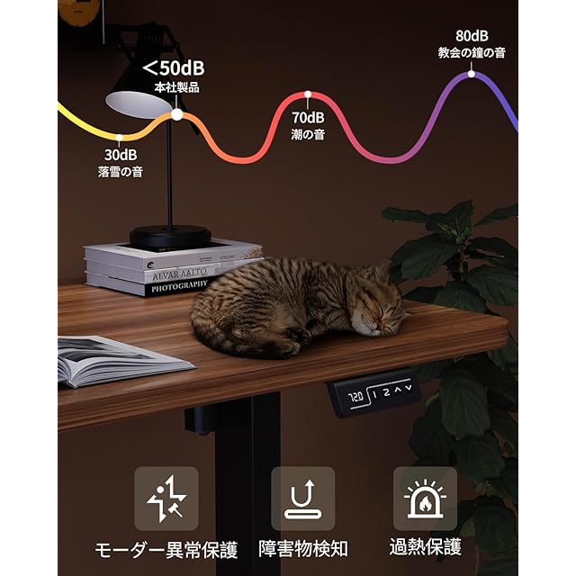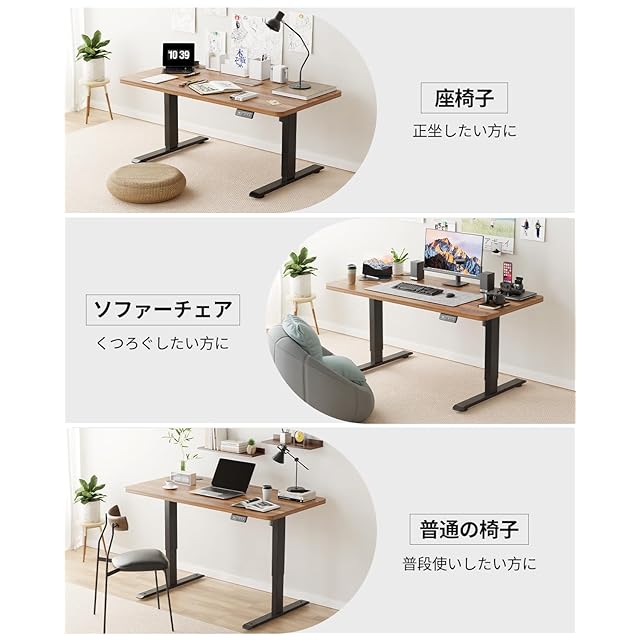 [頑丈な構造と保護機能]この高さ調整可能な電動昇降デスクは頑丈な金属フレームで支えられており、大きいT字型の足は非常安定的にサポートしています。産業用レベルのスチールフレームと固体ラミネートの組み合わせにより、最大60kgの荷重に耐えられます。また、モーターシステムには衝突防止機能と過熱保護機能が備えております。安定性に優れ、安心してお使いいただけます。