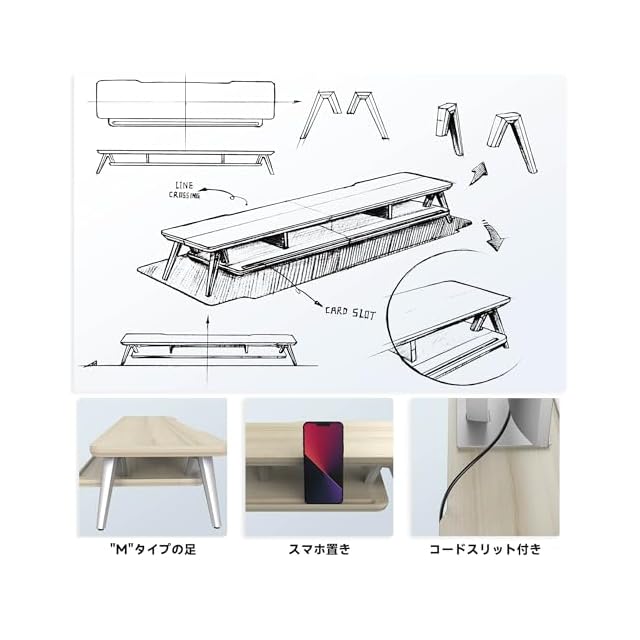 【安心安全な材質 ・優れた安定性】環境に優しいMDFから作られたパソコン台は耐久性に優れ、M型のアルミニウム脚は高級が溢れながら、天板をしっかりと支えています。机上台の最大の耐荷重はなんと50kgで27インチのモニターを2台を置いても安定しています。