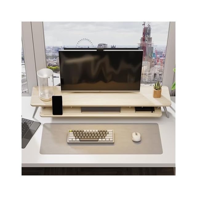Fenge モニター台 卓上 机上台パソコン台 机上ラック 108cm横幅 2段 木製天板 アルミニウム製脚 デスクトップ用 机上 モニタースタンド 机上台 pcモニター台 パソコンラック 卓上 収納 整理整頓 オークG04A2123C