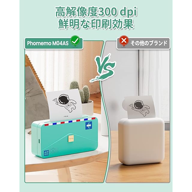 高解像度300dpi-インクレス印刷技術を採用し、フル充電時にクリアな印刷効果を発揮します。感熱紙だけで、鮮明な画像を印刷することができます。インクを必要としないので、時間とコストを節約できます。