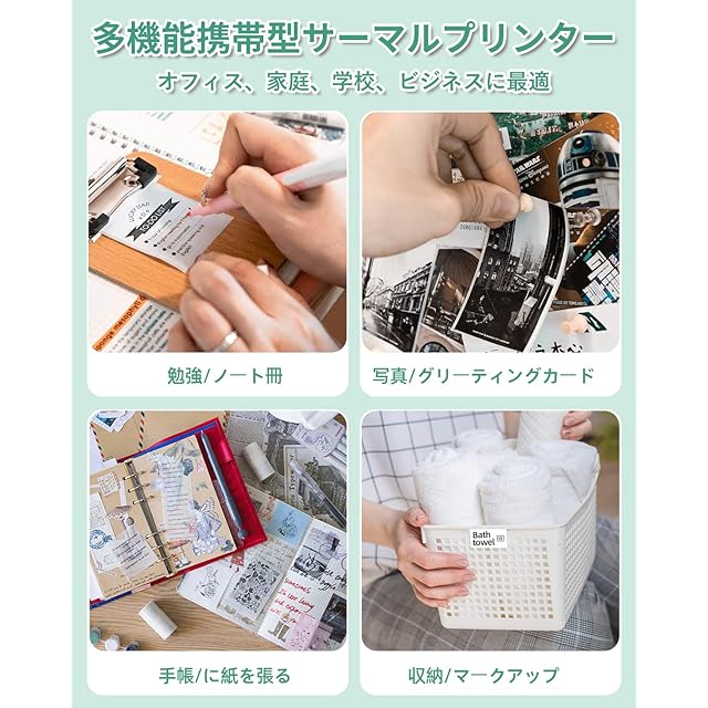 ホーム/オフィス/スクール/ビジネスでの使用に適した多機能サーマルプリンターPhomemo M04ASです。 リストや文書、学習ノートを印刷することができます。また、白黒写真やステッカーも印刷できます。透明な感熱紙を使用するとより良いです。クリスマス/感謝祭/誕生日プレゼント選びのギフトにもおすすめです。