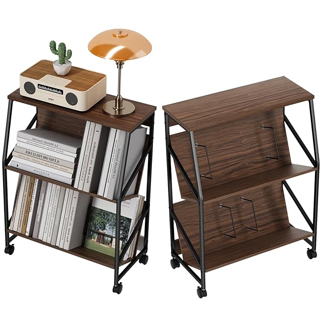 PTUWODSファイルラック 3段ファイルワゴン 書類棚 幅60×奥行30×高さ835cm 書類収納 A4収納 キャスター付き ファイル収納 (3段, クルミ)