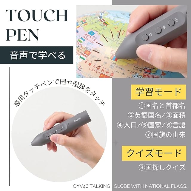 専用のタッチペンを使って楽しく学べる! しゃべる地球儀