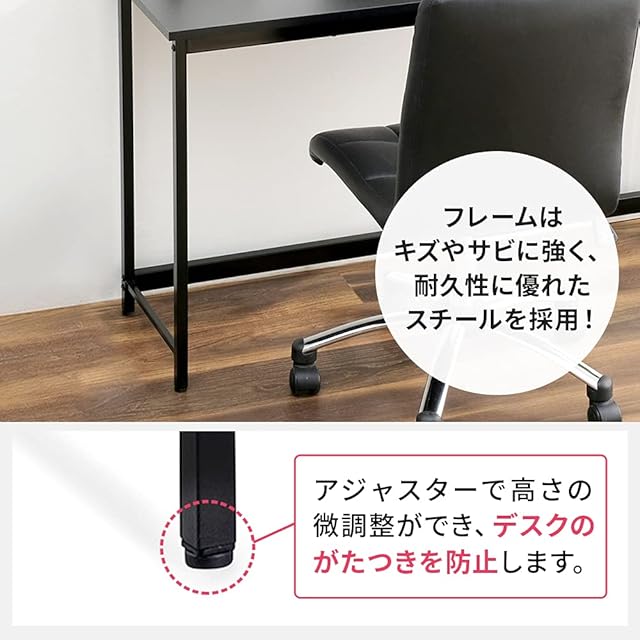 余計な装飾を無くした、飽きずに長く使えるシンプルデザイン。広々とした天板で、テレワークや勉強にもおすすめ。