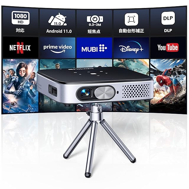【Android TV11.0搭載&進級版DLP】WiMiUS Q3プロジェクター小型【天井投影/自動垂直台形補正/短焦点/静音/防塵】屋外用/家庭用/5GWiFi/Bluetooth5.3/HIFIスピーカー miniモバイルプロジェクター Android/iPhone/スマホ/タブレット/パソコン/SWITCH/PS4/DVDプレーヤー対応ホームシアター【日本語取扱書&三脚スタンド付き】