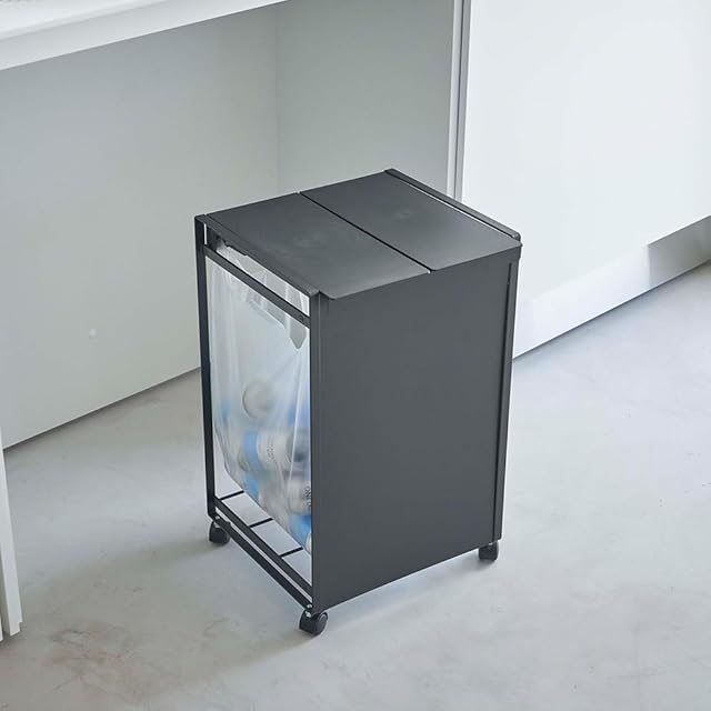 color:ブラック pattern:蓋付き 目隠し分別ダストワゴン 2分別 style:単品:
