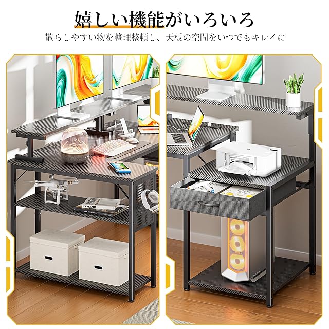 DOMICON ゲーミングデスク 幅183cm 引き出し付き コンセント付き 棚 収納 L字デスク パソコンデスク PC デスク computer desk 桌子 オフィスデスク 学習机 作業机 コーナーデスク 在宅勤務 組立簡単 黒