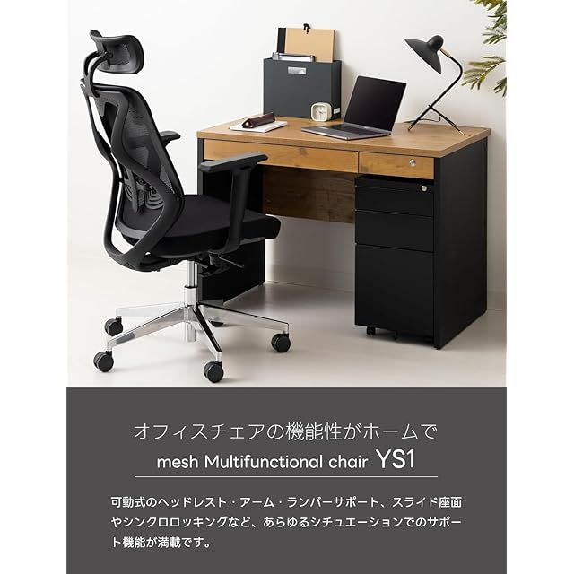 オフィスコム オフィスチェア YS-1 ハイバック 可動肘 ブラック (背メッシュ/座クロス) ヘッドレスト ランバーサポート スライド座面 OC-CHFB-NY03-AH-MBK2