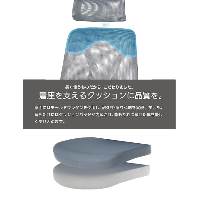 機能:上下昇降、座面位置調整(スライド機能) 、背座シンクロロッキング機能&3段階固定可能 、ロッキング強弱調節機能