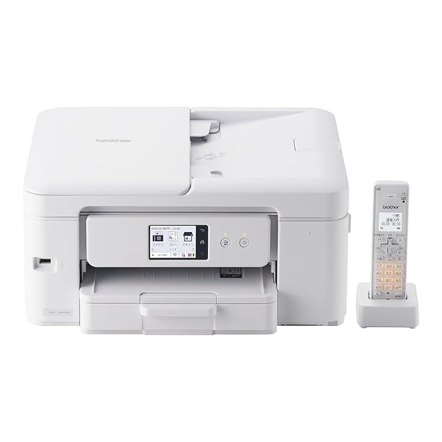 ・機能:プリント/コピー/スキャン/ファクス/コードレス電話機対応、タッチパネル液晶:2.7型、前面給紙、手差しトレイ(1枚)、ADF(自動原稿送り装置):最大20枚、自動両面プリント対応、レーベル印刷対応(CD・DVD・BDなどにプリントできる機能)