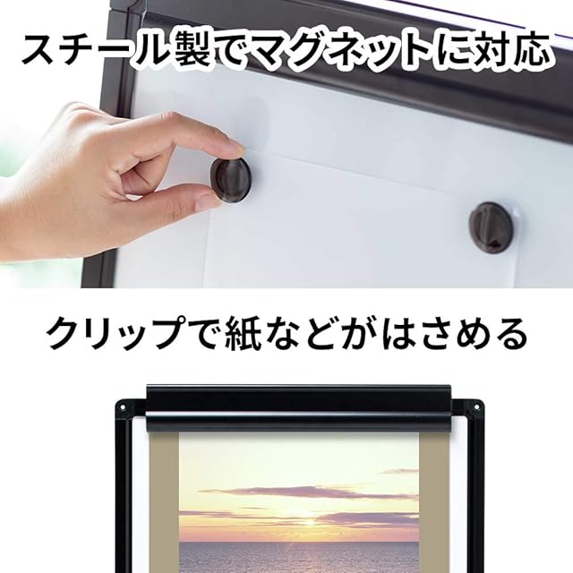 マグネット対応で資料なども貼り付けることができます。トレイ付きでマーカーやイレイザー置き場としてお使い頂けます。