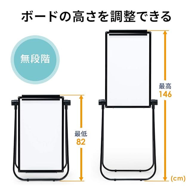 イーサプライ ホワイトボード 折りたたみ 両面 40×70cm クリップ付き スタンド 脚付き マグネット 高さ調節 縦型 回転 イーゼル Zoom セミナー EEX-WD02