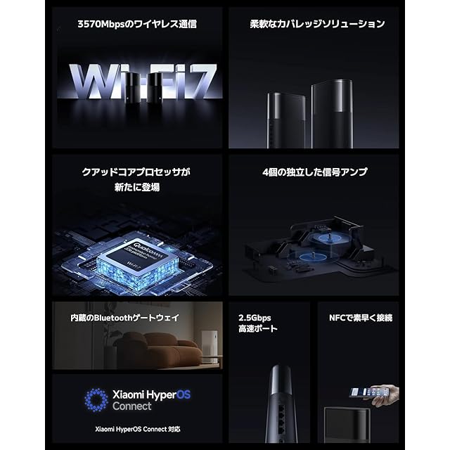 ✅Xiaomi HyperOS Connect 対応、NFCで素早く接続:Bluetooth Meshゲートウェイを活用し、XiaomiのBluetoothデバイスをスマートホームシステムに接続可能。512MBメモリーを搭載し、最大256台のWi-Fiデバイスと300台のBluetoothデバイスを同時接続できます。さらに、AndroidスマートフォンでルーターのNFCエリアにタッチするだけで、パスワード不要で素早く安全にネットワーク接続が可能です。