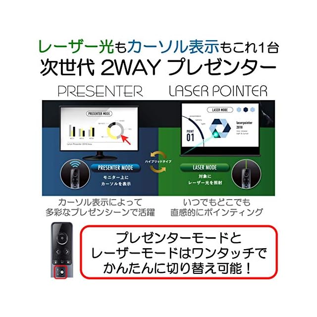 ワイヤレスでのスライド送りや、動画再生・リンクオープンなどのクリック操作にも対応