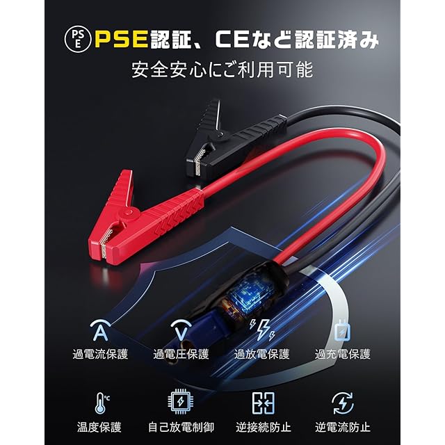 【安全保護機能搭載】Shell社はお客様の便利さと安全に考え、操作不当による事故を防ぐため、Shell ジャンプスターター バッテリー は過電流保護、自己放電制御、温度保護、高性能Cチップ、過放電保護、逆電流防止、過電流保護、逆接続防止、過電圧保護の9つの安全保護機能を搭載しております。これらの保護機能は、発火などの危険性からあなたを守ることができます。八大保護機能の上、Shell社は自己放電制御技術により、自己放電が少なく て長寿命など、きわめて優れた特長を持ちます。