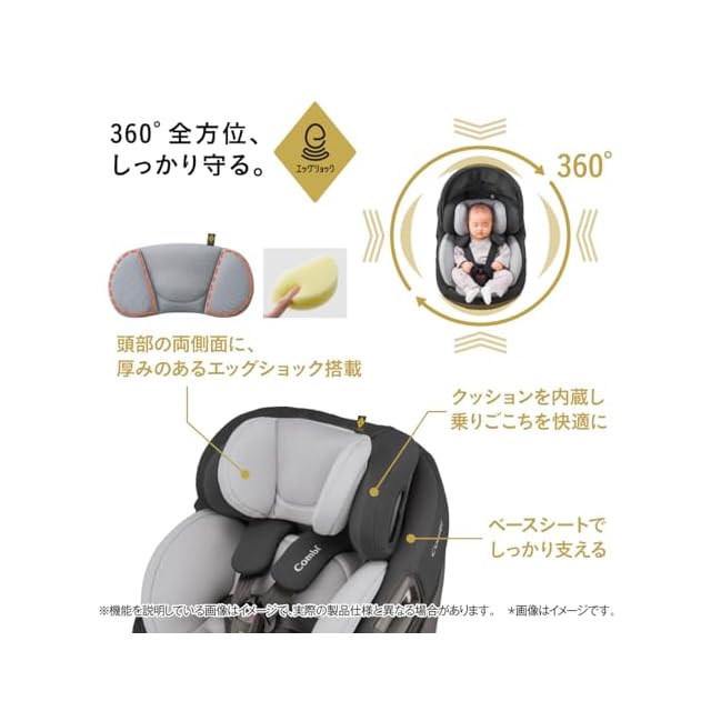コンビ ISOFIX固定 新生児対応 回転式 チャイルドシート 新生児から4才頃 ホワイトレーベル THE S ISOFIX エッグショック ZC-720 グレー 取付ラクラクセパレート 洗い替え用肩ベルトカバー付き