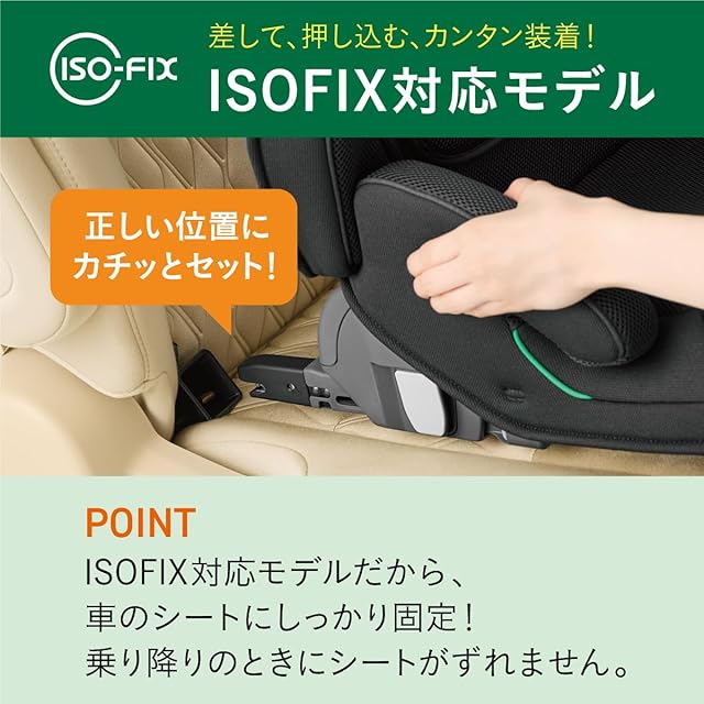 安全基準R129適合のISOFIX対応ジュニアシート。