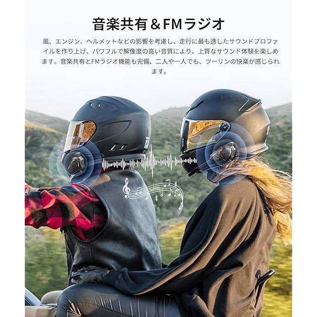 ✅【音楽ながら通話&音楽共有・ENC2.0&DSP&CVC8.0ノイズキャンセル】2枚Qualcommチップのおかげで、音楽、地図ナビアプリなどが再生中、同時にインカム通話対応なので、頻繁の操作を省き、ライディングに専念できます。音楽共有機能あり、恋人、夫婦、友人とか2人のライダーが走行中に同じ音楽を楽しむことができます。最新のENC2.0、DSPとCVC8.0三重騒音抑制技術を導入、2つ濾波器(ノイズフィルタ)備え、バイク用インカムのマイクが環境騒音を収集して対等の逆音波で騒音を抑制し、街の喧噪、通話エコー、風切り音やエンジンなどノイズを約90%以上除去できます。相手からの声や携帯電話からの音楽などが鮮明に聞こえ、この上クリアな音声を相手に伝えます。(※音楽共有距離は10M)