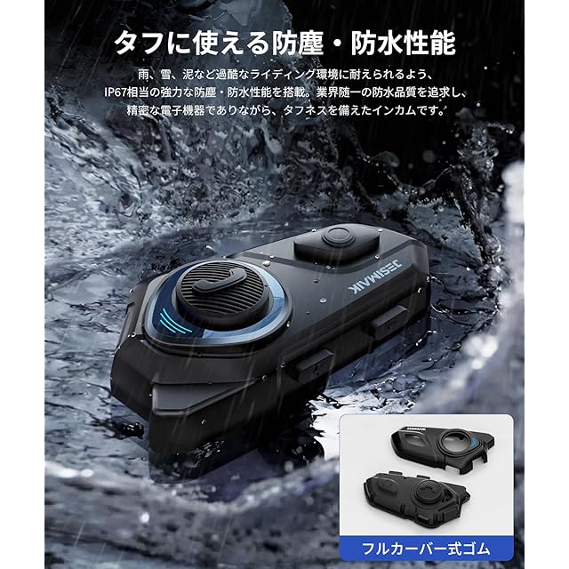 ✅【IP67防水防塵・押しやすいお大きボタン&Siri/音声アシスタント】IP67レベル防水防塵がインカムに備えており、従来品のゴムリングだけと異なり、特注インサート成形の内部器材を全部覆うゴムを採用しました。ゆえに、より強力な防水防塵効果をもたらし、走行中突然雨降っても心配する必要がりません。グローブを着装したまま使用する状況を考慮してバイク用インカムのボタンを大きく設計し、触感をよりはっきりさせ、いつでも簡単かつ迅速に操作できます。また、SiriとAndroidの音声アシスタント対応、電話ボタンを2回クリックしてスマホの音声アシスタントを呼び出すことができます。