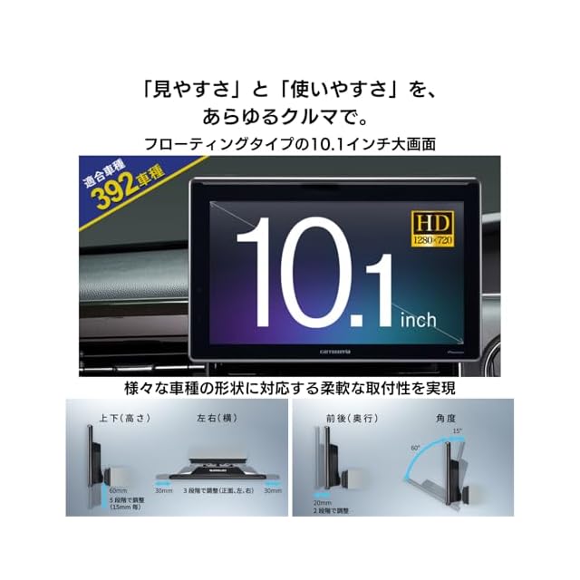 大画面ならではの「見やすさ」と「使いやすさ」をさまざまなクルマで楽しめる、10.1インチフローティングタイプ
