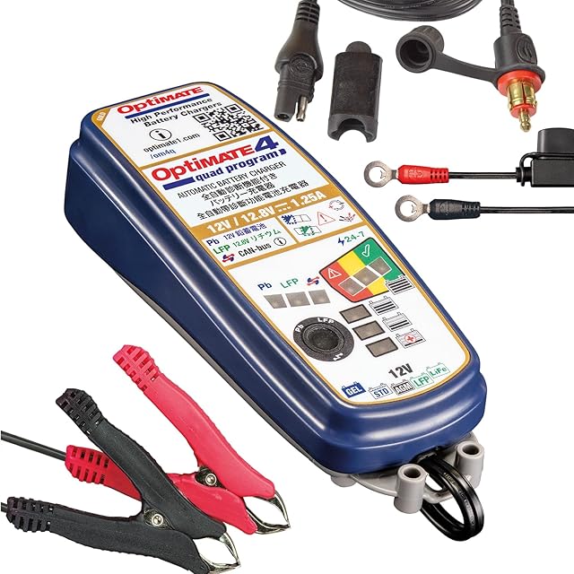 テックメイト(TecMATE)【公式】2023年秋新型!【O-09ヘラーソケット付】オプティメイト4Quadクアッド・プログラム 12.8Vリン酸鉄リチウムイオン/12V鉛電池兼用充電器。BMW motorrad キャンバス対応、トライアンフ、Ducati Mutistrada用 Canbus充電機能、3段階強力回復充電機能搭載 (O-09ヘラーソケット Can-busセット)