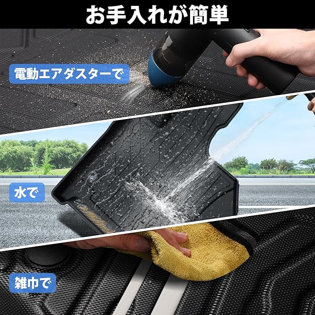 【高品質TPE素材採用】Jiooyのランドクルーザー250系 7人乗り フロアマットはTPE樹脂素材を採用していますので、耐摩擦性、耐熱性に優れます。お手入れがとても簡単!防水仕様なので泥や砂、食べこぼし等水洗いで簡単に洗い流せます。そして柔軟性あり、割れにくいです。頻繁に乗り降りしても大丈夫です。長年使用しても割れ、変形、変色を起こさない車マットに最適な素材です。