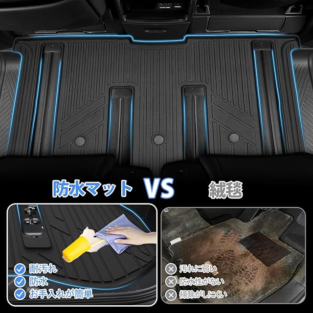 【3D立体構造・防水仕様】普通のフロアマットと異なりJiooy ランドクルーザー250 7人乗り 3dフロアマット縁の部分 が壁のように高く立ち上がっているので耐汚れと防水性を実現されました。汚れから車内を守るために欠かせないカーマット!防水仕様なので、勿論水にも強い雨の日にマットが濡れて嫌な思いをすることもありません。丸洗い可能で車内をいつも清潔に守てます。車内を汚したくない方におすすめ3D立体マット!
