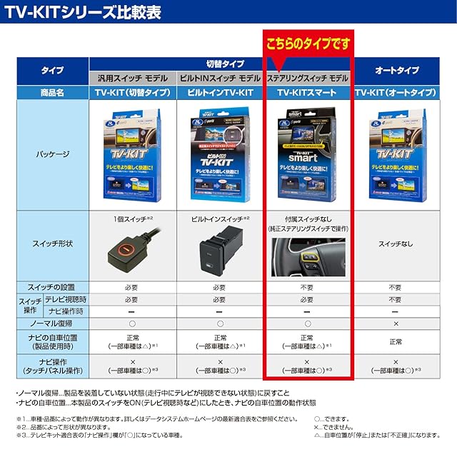 装着する車種またはナビの機種により、製品の適合品番が異なります。詳しい適合はデータシステムのホームページをご参照ください。