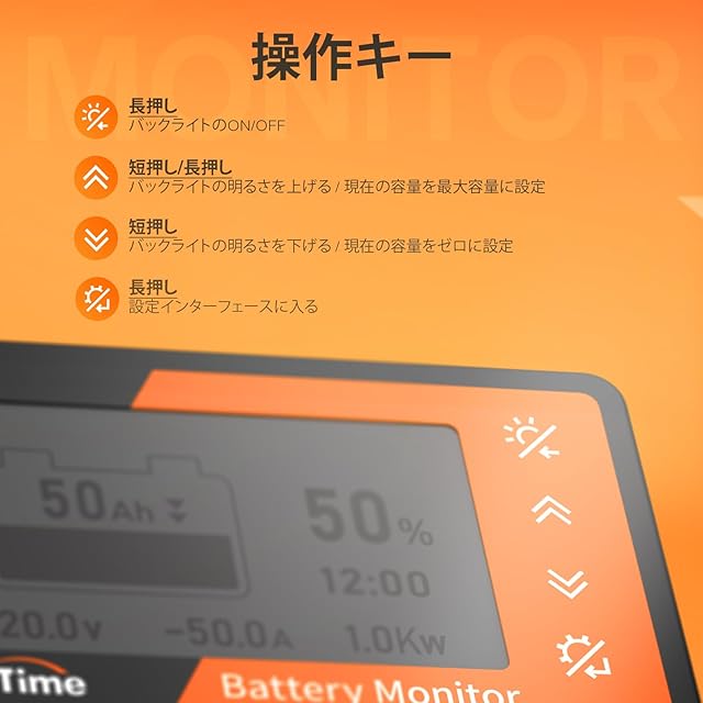 商品名:LiTime バッテリーモニター 500Aシャント付き 8V-120V RV オートバイ ゴルフカート ソーラーパネル用 LifePO4バッテリーモニター 電圧計 LCDスクリーン バックライト 低電力警報 容量パーセント リン酸鉄リチウムイオンバッテリー 電圧計ディスプレイ