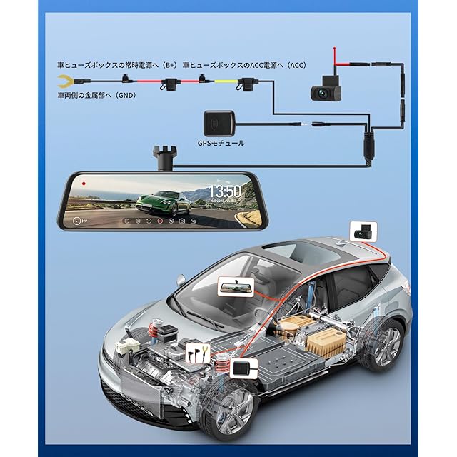 「初心者におすすめ駐車監視&バックギア連動」駐車監視:衝撃を検知すると、自動的に録画を開始、事故後の一定時間の映像を上書きされないよう専用フォルダに保存することができます。駐車時の車上荒らしや当て逃げなどの記録にも役に立ちます。バックギア連動機能:後ろのリアルタイム映像をミラーで確認しながら、バックラインでバック駐車を安全に行えます。エンジン連動電源:エンジンのオンオフに合わせて自動で起動し、録画を開始、わざわざ操作をしなくても、うっかりして録画を忘れてしまうことがありません。