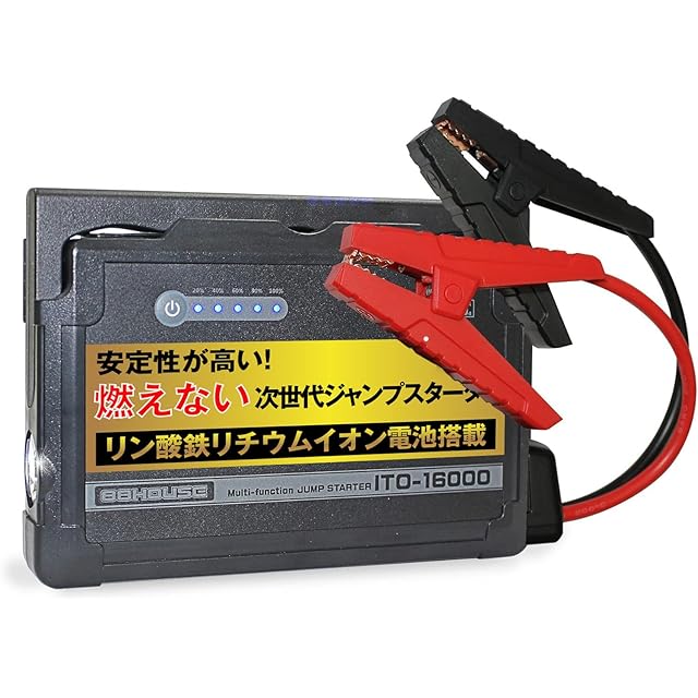 ハチハチハウス ジャンプスターター ITO-16000 安全な リン酸鉄 リチウム電池 LiFePO4 12V 大容量 16000mAh ガソリン/ディーゼル車対応 最大電流 1000A 安全保護機能 コンパクト 800グラム L1620F