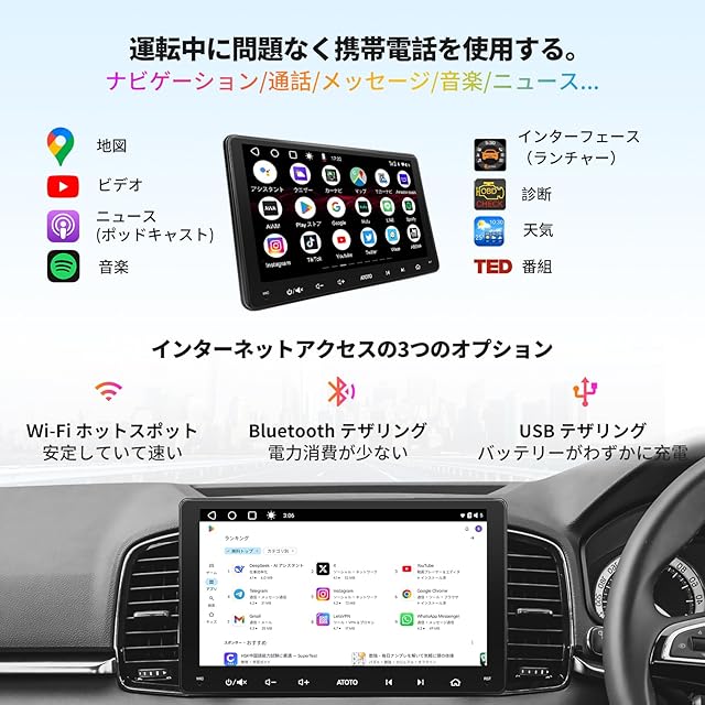 商品名:【9インチ】ATOTO A6 PF ダブルDIN Androidカーステレオ、ワイヤレスCarPlay、Android Autoワイヤレス、IPSディスプレイ、Androidオーディオ統合カーナビゲーション、GPS追跡、デュアルBluetooth、WiFi/BT/USBテザリング