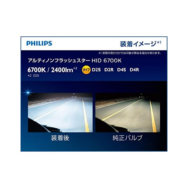 Philips(フィリップス) 自動車用バルブ&ライト HID ヘッドライト D2S 6700K 2400lm 85V 35W アルティノン 純正交換用 フラッシュスター 車検対応 3年 PHILIPS Ultinon 85122FSJ: