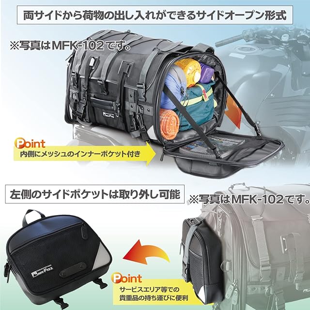 付属品:MP-12 (ショルダーベルト)×1, MP-13 (ホルダーベルト)×2, MP-123T (固定ベルト)×4, MP-124 (接続バックル)×1, MP-106 (レインカバー)×1, MF-4521 (セフティベルト)×1, オプション品:MP-295 (ベルト止めストッパー), MP-313 (バンジーコード)