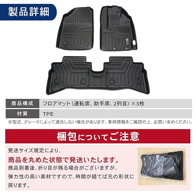 [適合車種] LAND CRUISER 250/ランドクルーザー250 [適合型式] GDJ250(GDJ250W) TRJ250(TRJ250W) [適合グレード] ZX VX [商品素材] TPE [商品構成] フロアマット3枚 [注意事項] 2024年4月(令和6年4月)~ 注意)ガソリン/ディーゼル両方対応 5人乗り 7人乗り両方対応