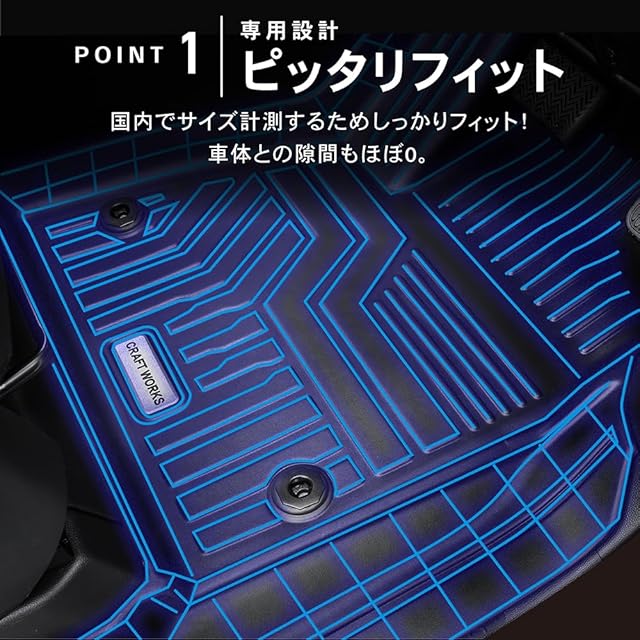 POINT.1 「車種別専用設計」 ジャストフィットでずれない専用設計となっております。 商品開発担当が現車から何度も試作を施し作成されたため、置くだけでピッタリフィットします。 泥・ホコリ・液体から愛車を守ります。また工具も一切不要なので、商品到着後すぐに設置が可能です。・POINT.2 「防水・防汚・防臭」 マットが汚れたら水拭き、水洗いOKです。また耐候性に優れ、長時間使用しても表面劣化が起こりません。防水設計、衝撃と水気から保護し、耐水性と耐久性に優れた素材を使用し、取り外してお手入れも簡単です。