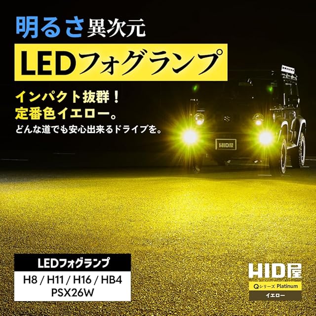 HID屋 H8 H11 H16 フォグランプ LED イエロー 爆光 13100lm 12V 車検対応 Qシリーズ 2本1セット