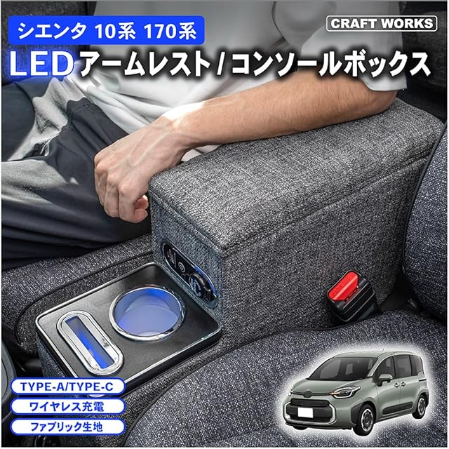 クラフトワークス シエンタ コンソールボックス 170系 コンソール ボックス 10系 15系 アームレスト センターコンソール 収納 SIENTA 新型 (ワイヤレス充電有, グレー(ファブリック生地))