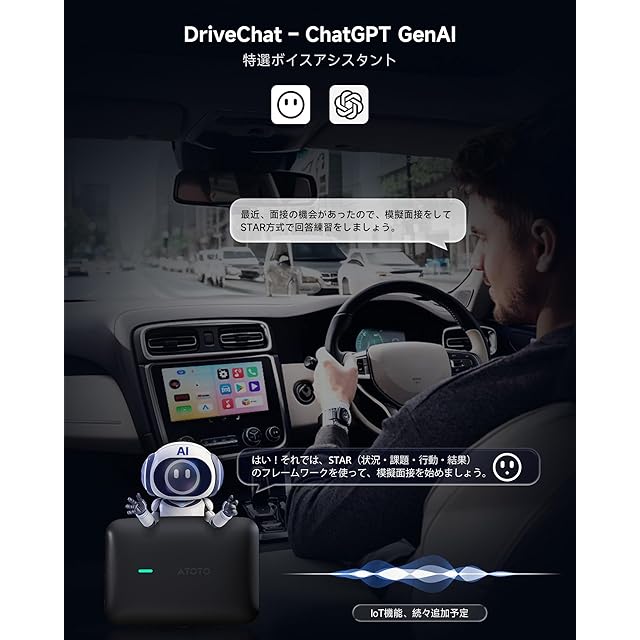 話題のChatGPT搭載!AIアシスタント「DriveChat」:話題のChatGPTがあなたのドライブをより快適に。AIとの自然な会話、専門的なアドバイス、アップデートによる新しいAIコマンドなど、毎日の運転がさらに便利になります。