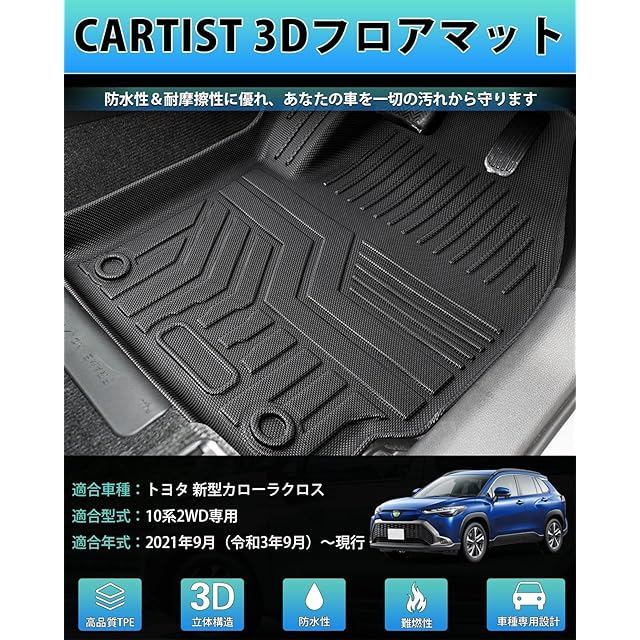 Cartist カローラクロス 10系 に適用 フロアマット 2WD専用 立体カーマット 車用 3Dフロアマット 立体構造 COROLA CROSS 2021年9月~現行 車種専用設計 防水 滑り防止 セカンドマット 耐汚れ TPE素材 カスタムパーツ 取付簡単 保護パーツ カー用品 3PCSセット