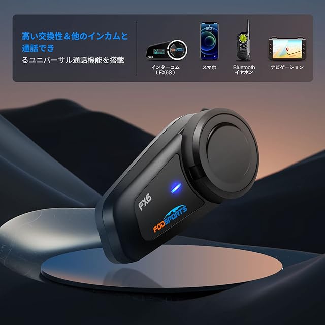 「6人同時通話&1000m通信距離&優れたCVCノイズ軽減」FX6は最大6人同時通話をサポートします。4人通話は最適です!トイレやガソリンスタンド、コンビニなど寄りたい場所というのも、わざわざ信号待ちで先頭の人に伝える必要が無くなり、直ぐに伝える事が可能なインカムです。建物や車などの障害物のない場合、インカム会話の直線距離は1000mを達します。また、CVCノイズ軽減技術によると、走行中の風切り音を低減して、相手の声をクリアに聞こえます。専門の防風マイクを搭載しておりますので、周囲のノイズを低減して、自分の声を相手にはっきり伝えております。
