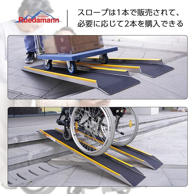 軽量で長持ち:ラダーレールはアルミ製で、軽量ながら高強度です。鉄製スロープに比べて錆びにくく、長期間安定して使用できます。バリ取り加工済みで、手やタイヤに安全です。